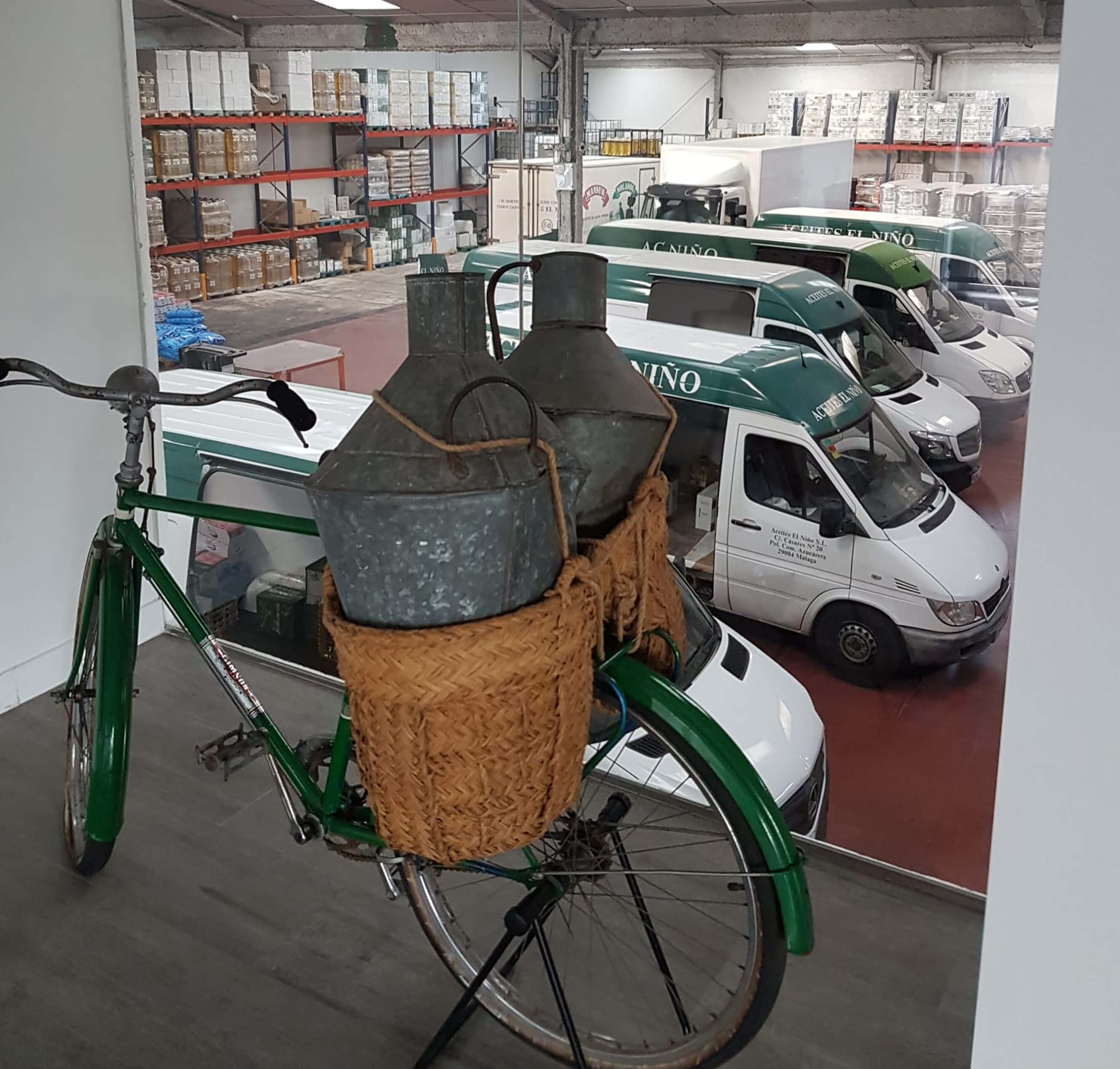 Actualmente, Aceites El Niño opera desde una nave de 1.700 m² en el Polígono Comercial La Azucarera, en Málaga. Contamos con un equipo de 22 personas y una flota de once vehículos que realizan el reparto por toda la provincia malagueña y Andalucía. Más de siete décadas después, seguimos ofreciendo un servicio exclusivo y cercano, manteniendo vivos los valores con los que empezamos.